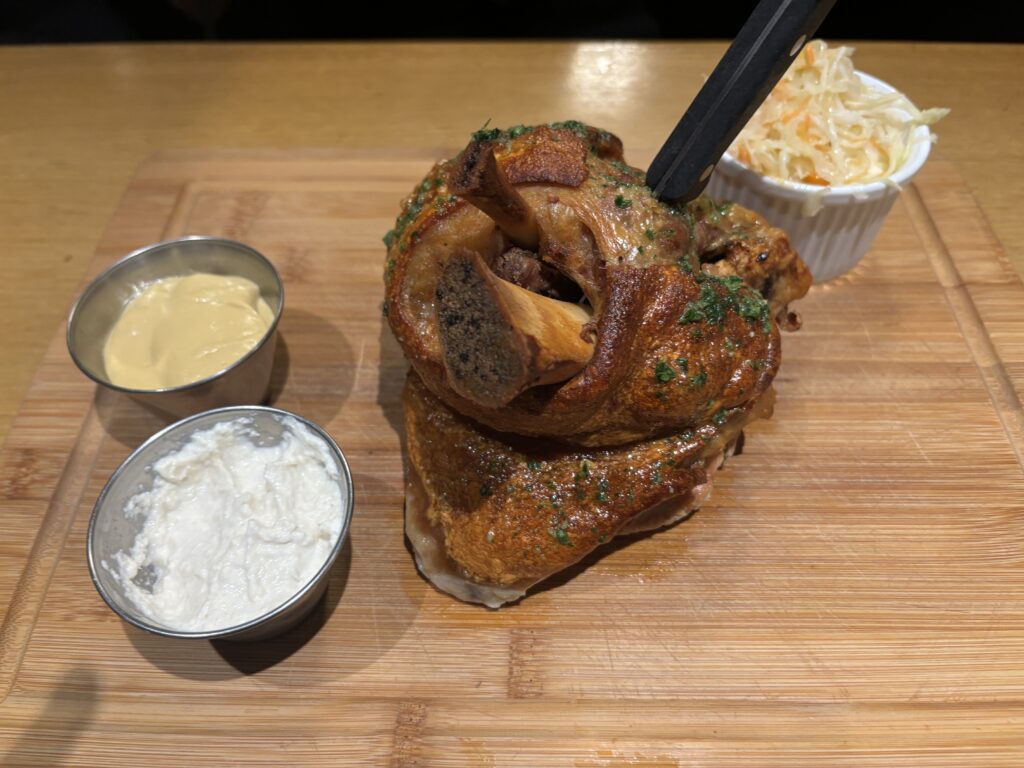 ドイツでも似たものをいただきましたが、こちらも皮はパリッパリ、中はふわふわアツアツなお肉がとても美味しかったです🤤