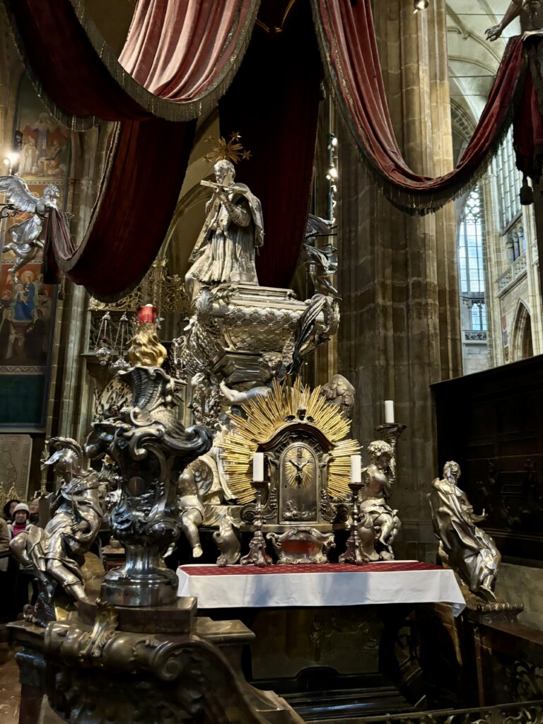 奥まで進むと、見どころの1つである聖人ヤン・ネポムツキーさんの墓碑があります