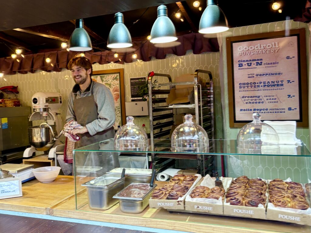 旧市街の可愛い街並みの中にあって、おしゃれキャンドルやら、シナモンロールやら、