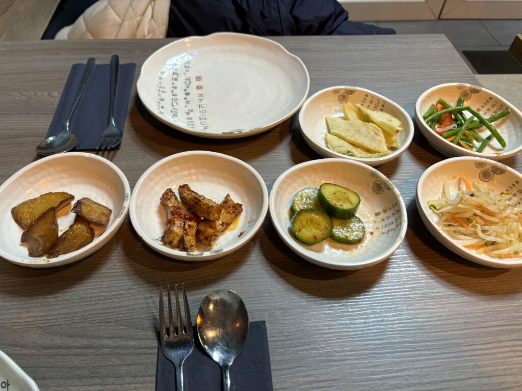 もう前菜の小鉢が多いのとかこれぞコリアン!全部美味しかったけど、私のおすすめはチヂミかな!