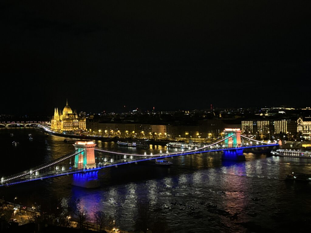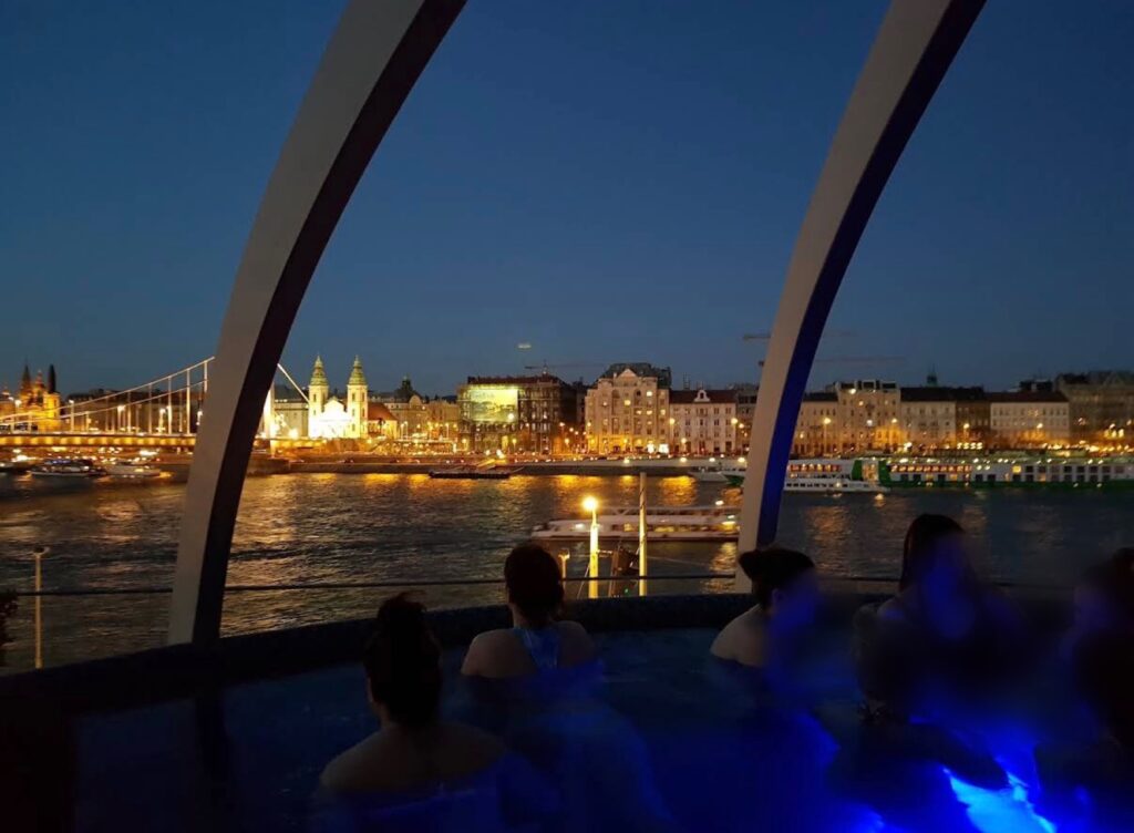 屋上の露天風呂から、ドナウ川とペスト側の街を眺められるのも良かったです♨️ただ冬だとお湯の温度はぬるめかも…🌷