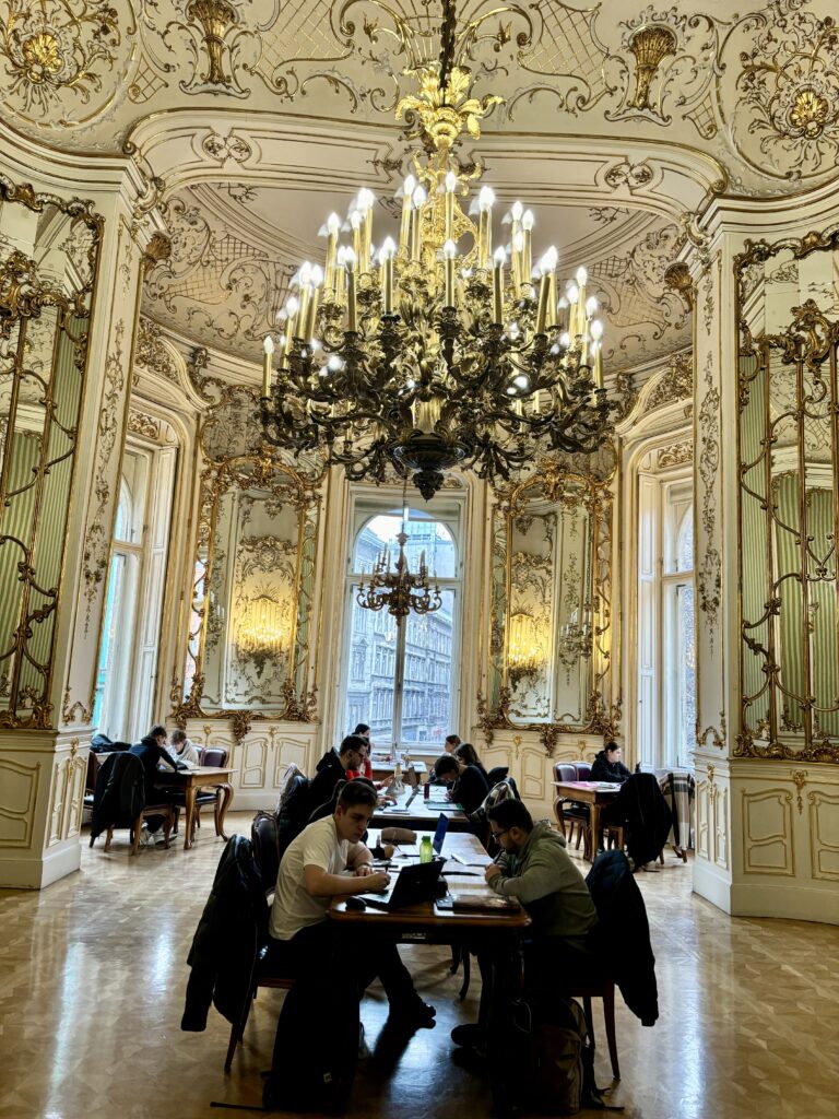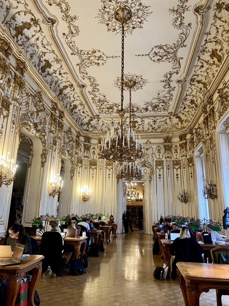 中に入ってみると、一般的な図書館ゾーンがあり、4階に上がると、当時の宮殿だったゴージャスな内装のお部屋があります!