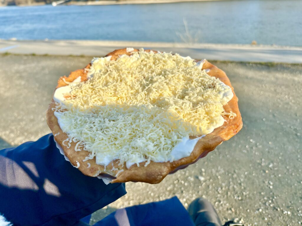 ドナウ川を見ながらかぶりついた熱々のランゴスが腹ペコの胃に染みる〜🤤